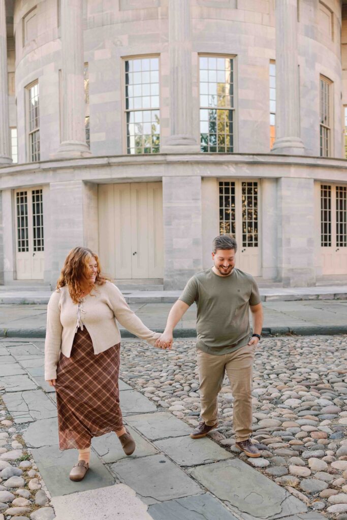 Old City Philadelphia Cobblestone Engagement Photos: Texture, Movement, and Old-World Charm