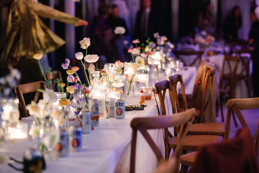 Yes, people looked incredible — tailored suits, great dresses, polished details. But the energy? Completely unpretentious. The kind of party where guests hit the dance floor early, laughter is loud, and no one worries about doing things “the right way.” During the reception, Miller Lite cans mixed right in with formalwear. It was the perfect contrast. Nothing felt overly curated or precious.