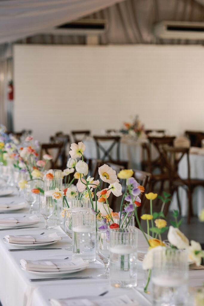 And all of the flowers were locally-grown, even with it being late February! I obsessed over the florals throughout the reception hall. The colors and textures added so much depth without ever overpowering the space. Lucia from Rooted Floral Design shared that one of the reasons she loves working at Hummingbird House is because it’s designed to allow the addition of florals an greenery to the ceiling, which is an easy way to transform a space and make a big impact.